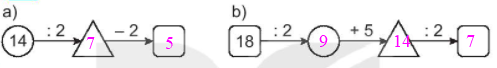 Tính kết quả các phép tính theo chiều mũi tên rồi điền vào ô trống.
