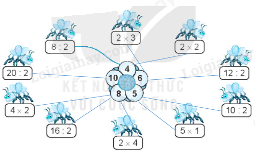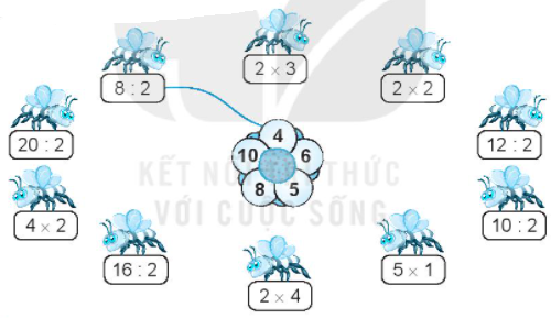 Tính nhẩm kết quả các phép tính dựa vào bảng nhân 2, bảng chia 2 rồi nối với số tương ứng.