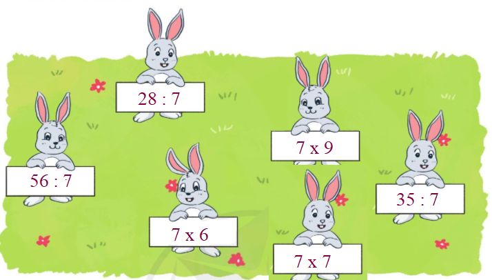 – Thực hiện phép chia số vịt đó cho $7$ rồi chọn đáp án thích hợp.