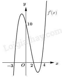 Từ đồ thị hàm số ta thấy \(f\left( x \right) = 0 \Leftrightarrow \left[ \begin{array}{l}x = 2\\x = 4\\x =  – 3\end{array} \right.\).