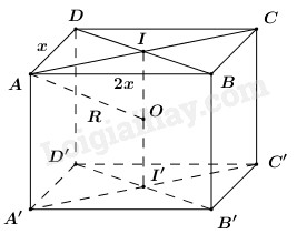 \({V_{ABCD.A’B’C’D’}} = AA’.AB.AD = \sqrt {4{R^2} – 5{x^2}} .2{x^2}\).