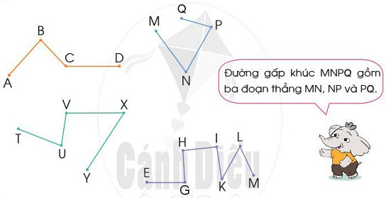 Đường gấp khúc MNPQ gồm ba đoạn thẳng MN, NP và PQ.