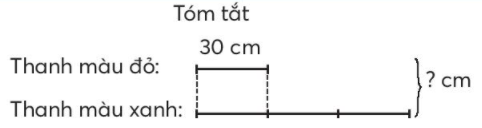 Thanh sắt sơn màu đỏ dài 30 cm, thanh sắt sơn màu xanh dài gấp 3 lần thanh sắt sơn màu đỏ. Hỏi cả hai thanh sắt dài bao nhiêu xăng–ti–mét?