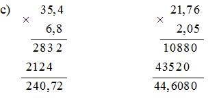 c) \(35,4 × 6,8 ;\)                    \(21,76 × 2,05 .\)