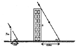 Khi đó ta có: \(\tan \alpha  = \dfrac{7}{4} = \dfrac{h}{{60}} \Rightarrow h = 105\,\,(m)\)