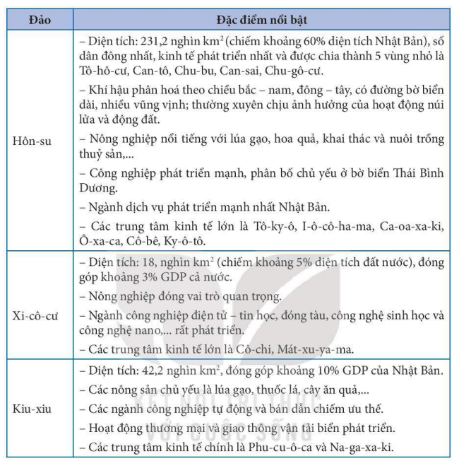 Dựa vào thông tin mục III, hãy so sánh đặc điểm nổi bậtc ủa các vùng kinh tế Nhật Bản.