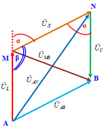 => \(4{U_L}{U_X}{\rm{cos}}\alpha  = U_L^2 + U_X^2 \ge 2{U_L}.{U_X}\) (Theo cosi)