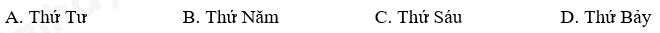 Ngày 30 tháng 8 là thứ Ba thì ngày 2 tháng 9 cùng năm đó là: