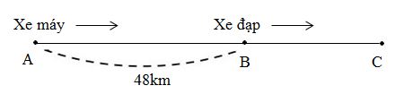 a) Một người đi xe đạp từ B đến C với vận tốc 12km/giờ, cùng lúc đó một người đi xe máy từ A cách B là 48 km với vận tốc 36km/giờ và đuổi theo xe đạp (xem hình dưới đây). Hỏi kể từ lúc bắt đầu đi, sau mấy giờ xe máy đuổi kịp xe đạp ?