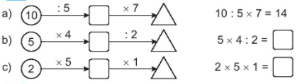 Tính nhẩm kết quả các phép tính theo chiều mũi tên rồi điền số thích hợp vào ô trống.