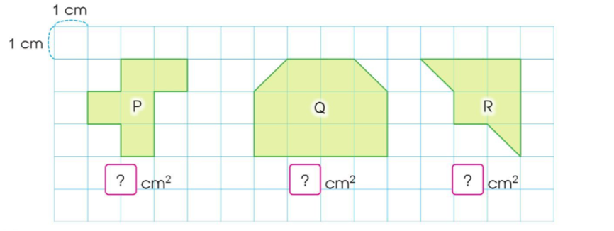 Diện tích của mỗi hình bằng số ô vuông đếm được.