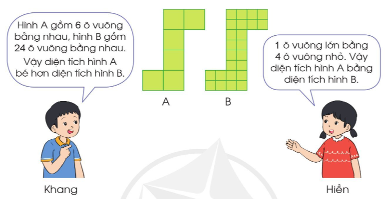 Một ô vuông lớn ở hình A bằng 4 ô vuông nhỏ ở hình B.