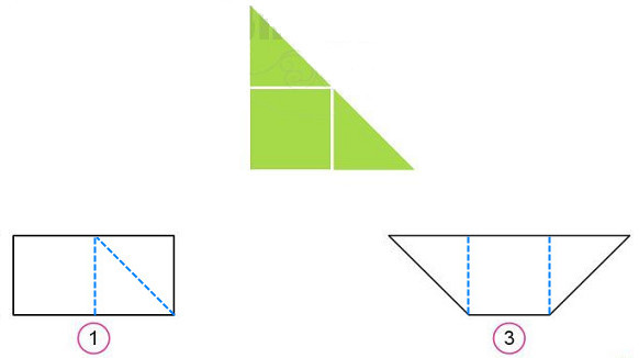 Từ ba mảnh bìa màu xanh ta ghép được hình 1 và hình 3: