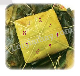 a,  Cái bánh chưng này được chia thành 8 miếng bằng nhau.