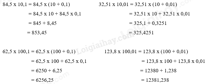 Tính bằng hai cách: a) 102,81 x 42 + 102,81 x 18 = ? Áp dụng nhân một số với một tổng để tính: 84,5 x 10,1