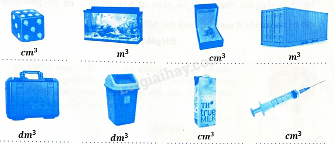 Quan sát các vật rồi chọn đơn vị đo thể tích thích hợp.