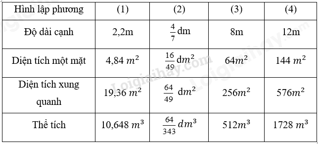 b) Thể tích hình lập phương.