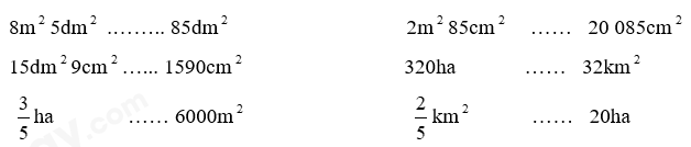 Điền dấu >, <, = thích hợp vào chỗ chấm: Để lát nền một căn phòng cần 240 viên gạch vân gỗ hình vuông có cạnh 50cm.