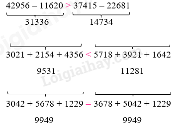 Tìm x, biết a) x – 5 678 = 24 356 – 11 439 Tính bằng cách thuận tiện nhất: 6 184 + 309 + 1 516 Điền dấu (>, <, =) thích hợp vào chỗ chấm 42 956 – 11 620 ……….. 37 415 – 22 681