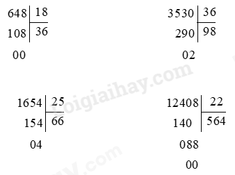 Đặt tính rồi thực hiện chia lần lượt từ trái sang phải.