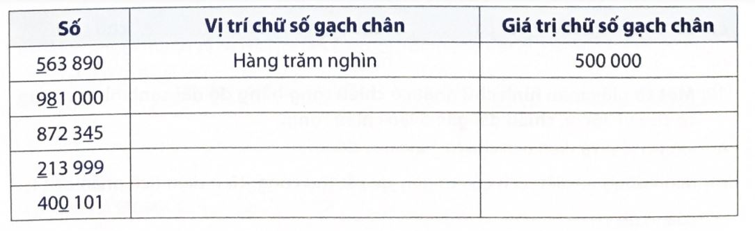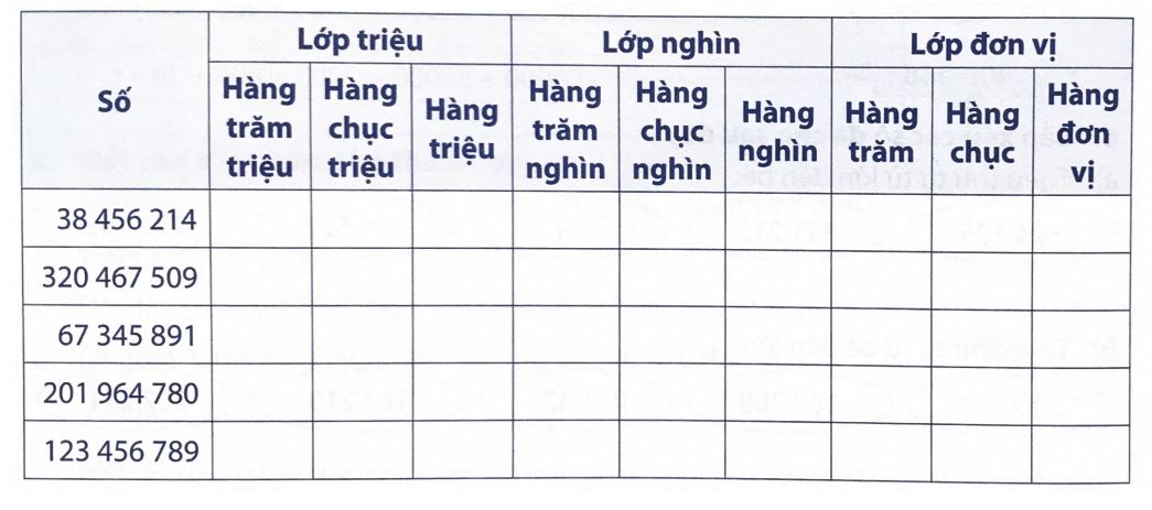 Xác định hàng của các chữ số rồi viết giá trị của các chữ số đó.