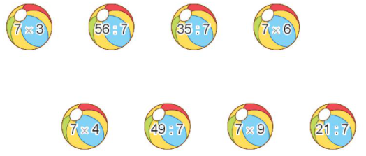7 x 3 = 21                       56 : 7 = 8