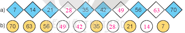 Đếm thêm 7 đơn vị hoặc đếm lùi 7 đơn vị rồi điền số còn thiếu vào ô trống.