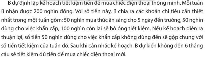 – Đọc kế hoạch tài chính cá nhân của B và xác định những đặc điểm của kế hoạch tài chính đó.