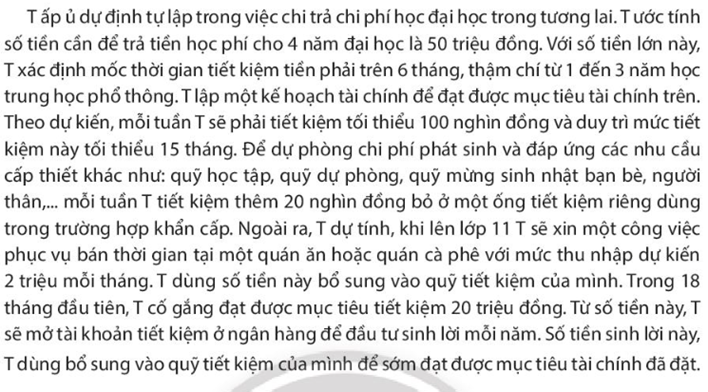 – Em hãy mô tả nội dung kế hoạch tài chính cá nhân của bạn T.