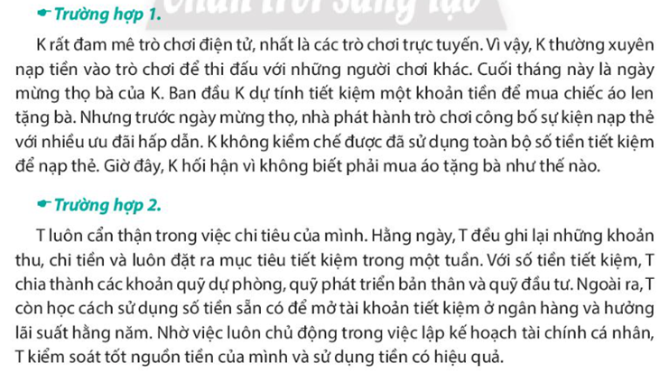 Em hãy đọc các trường hợp sau và giúp các nhân vật lựa chọn loại kể hoạch tài chính cá nhân phù hợp.