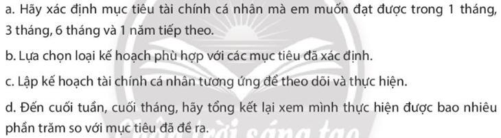 – Dựa vào thông tin đã biết, nêu các bước lập kế hoạch tài chính cá nhân của em.