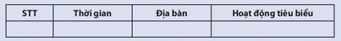 1. Lập và hoàn thành bảng (theo gợi ý dưới đây) về những hoạt động tiêu biểu của phong trào cộng sản và công nhân quốc tế cuối thế kỉ XIX – đầu thế kỉ XX.