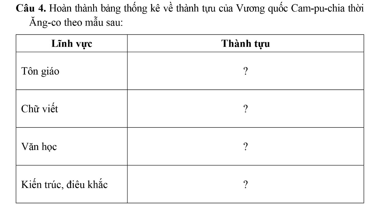 Câu 2. Biểu hiện nào sau đây không phản ánh đúng sự phát triển của Cam-pu-chia thời Ăng-co?
