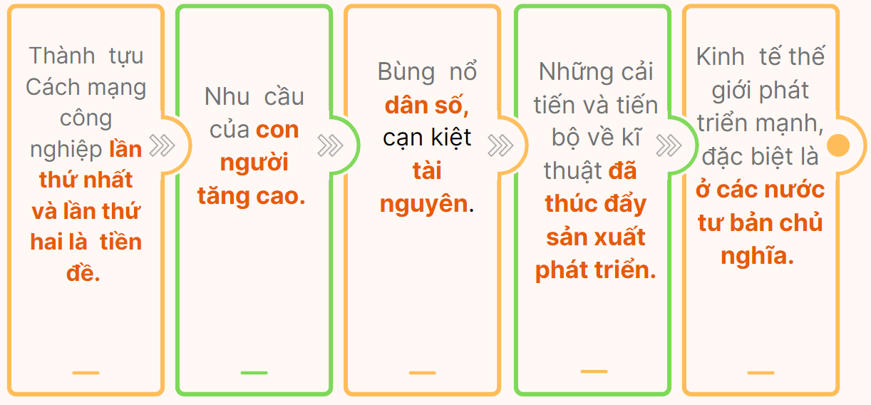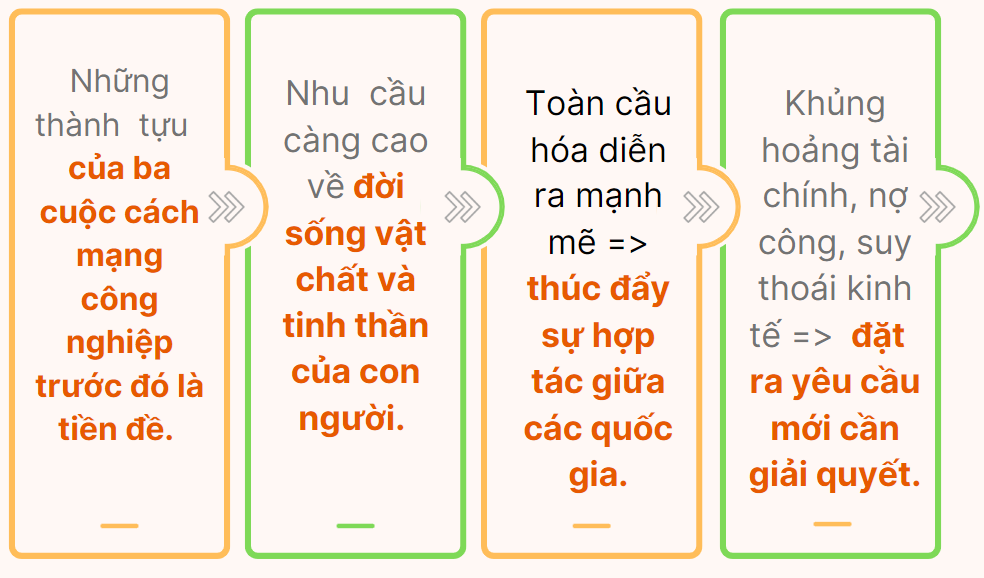 Câu 2. Điền vào chỗ trống các nội dung liên quan đến bối cảnh ra đời các cuộc cách mạng công nghiệp thời hiện đại.