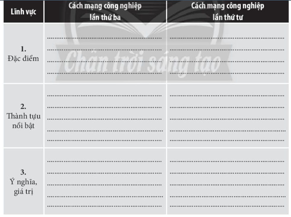 Câu 3. Hoàn thành bảng thống kê hai cuộc cách mạng công nghiệp thời hiện đại theo các tiêu chí dưới đây:
