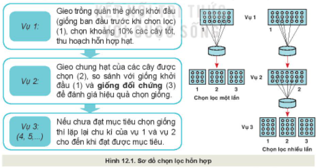 Quan sát Hình 12.1, mô tả phương pháp chọn lọc hỗn hợp một lần và chọn hỗn hợp nhiều lần.