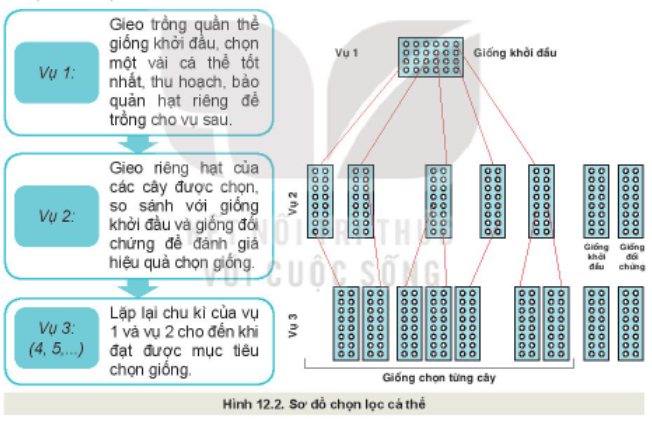 Quan sát Hình 12.2 và mô tả phương pháp chọn lọc cá thể.