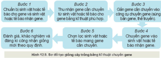 Quan sát Hình 12.9 và mô tả các bước tạo giống cây trồng bằng kĩ thuật chuyển gen.