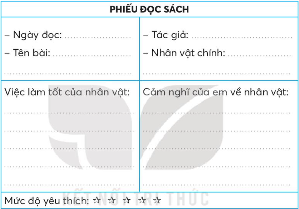 Đọc câu chuyện, bài văn, bài thơ về một việc làm tốt và viết thông tin vào phiếu đọc sách.