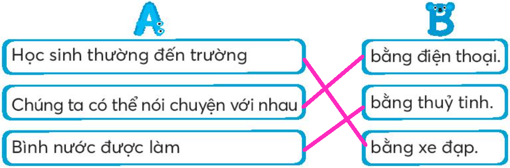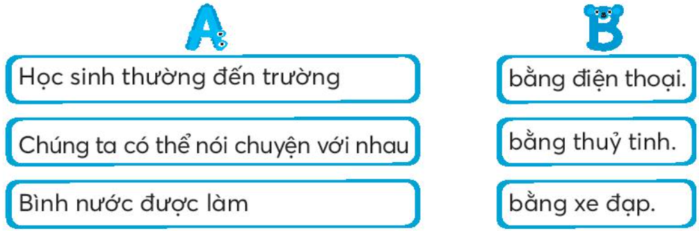 Nối ý ở cột A với ý phù hợp ở cột B để tạo câu.