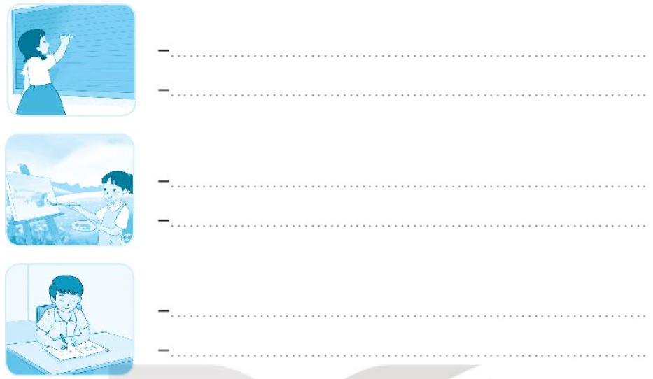 Em quan sát các tranh và dựa theo mẫu để hoàn thành bài tập.