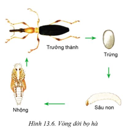 1. Quan sát Hình 13.6 và nghiên cứu nội dung mục 2.5, mô tả đặc điểm hình thái và tập tính sinh học của bọ hà.