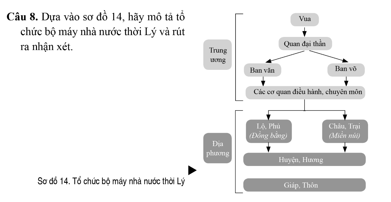– Nhận xét: Tổ chức bộ máy nhà nước thời Lý đã quy củ, chặt chẽ và hoàn thiện hơn từ trung ương đến địa phương so với tổ chức nhà nước thời Tiền Lê.