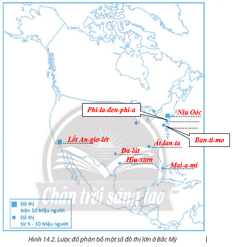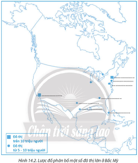 + Các đô thị ở Bắc Mỹ phân bố không đều, tập trung chủ yếu ở khu vực Đông Bắc, ven Hồ Lớn do đây là những khu vực phát triển công nghiệp sớm; thưa thớt ở phía Bắc Ca-na-đa và khu vực nội địa Bắc Mỹ do đây là những vùng có điều kiện tự nhiên ít thuận lợi.