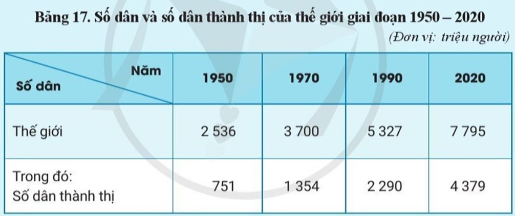 a) Tính tỉ lệ dân thành thị của thế giới giai đoạn 1950 – 2020.