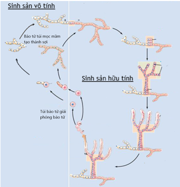 Nhóm vi sinh vật nào có hình thức sinh sản vừa bằng bào tử vô tính, vừa bằng bảo tử hữu tỉnh? Nếu ví dụ.