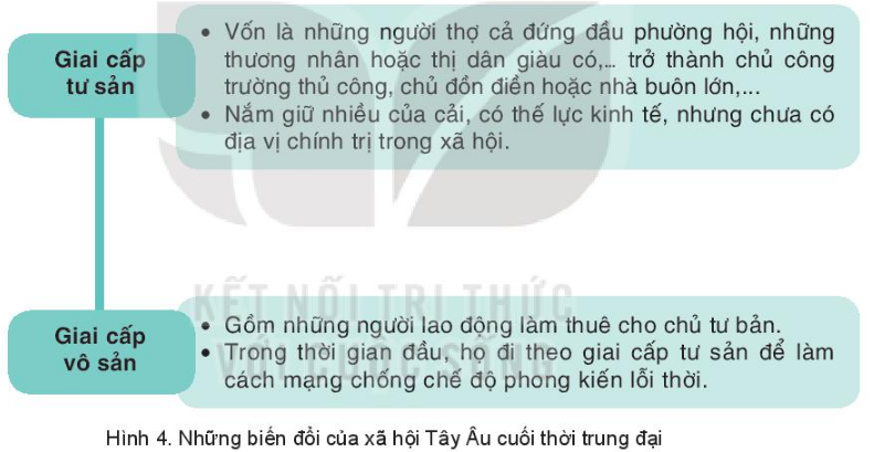 B2: Quan sát hình 4 SGK trang 17 thấy được sự xuất hiện của 2 giai cấp mới đó là tư sản và vô sản.