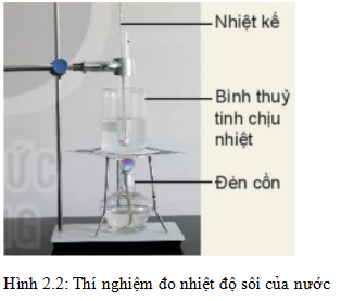 Quan sát thiết bị thí nghiệm về nhiệt học ở hình 2.2 và cho biết đặc điểm của các dụng cụ thí nghiệm. Trong khi tiến hành thí nghiệm để đảm bảo an toàn cần chú ý đến điều gì?