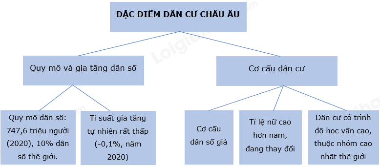 Vẽ sơ đồ hệ thống hóa các đặc điểm dân cư châu Âu.