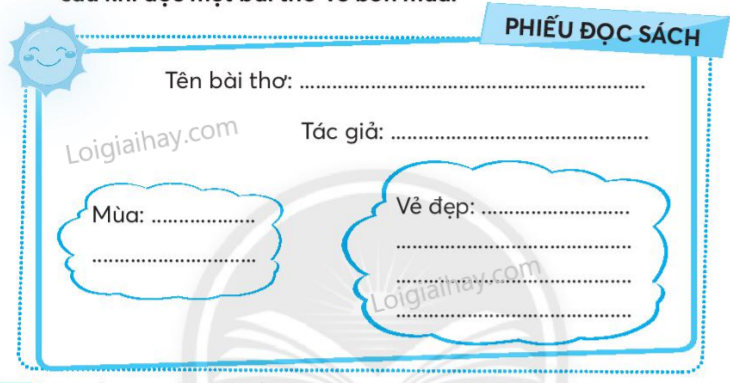 Viết vào Phiếu đọc sách những điều em đã chia sẻ với bạn sau khi đọc một bài thơ về bốn mùa.